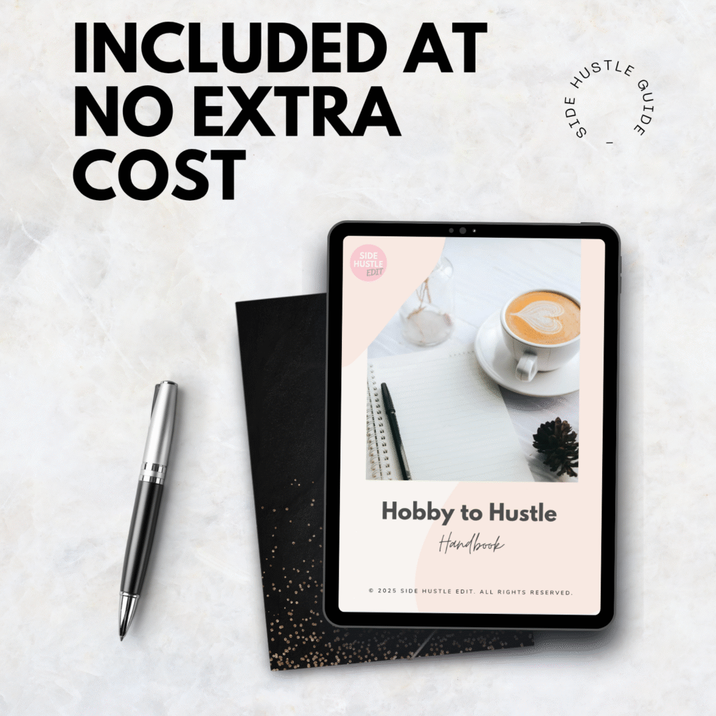 Every enrolment includes the Hobby to Hustle Handbook, a comprehensive guide you can print or use digitally as you build your business.